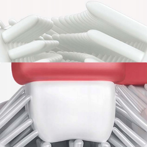 Konstrukcja główki szczoteczki do zębów w kształcie literki U, powoduje czyszczenie powierzchni zębów dużo dokładniej niż tradycyjne szczoteczki.