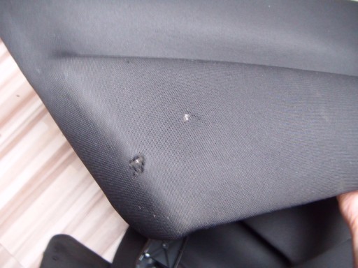 Na boczku lewym przednim na rogu rozdarcie w materiale. Na lewym tylnym rozdarcie na brzegu . Do wyczyszczenia. nr 3347