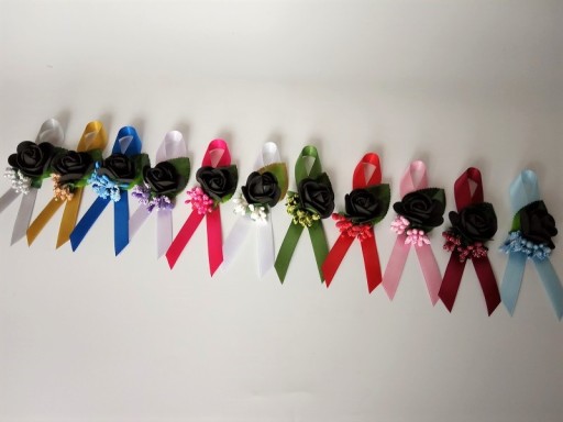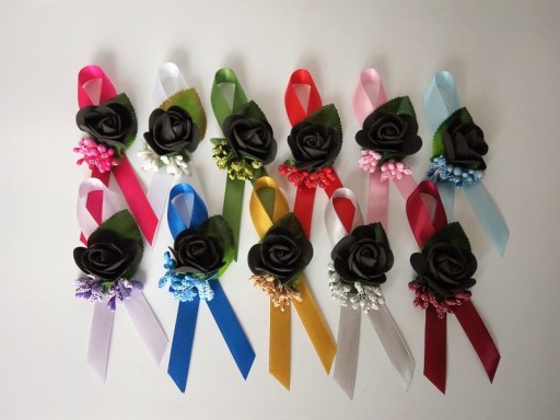 Na innej aukcji dostępne są pasujące do przypinek kotyliony na rękę dla pań.