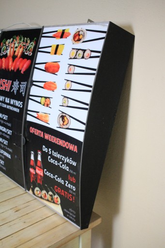 mamy do sprzedania widoczną na zdjęciach podświetlaną reklamę. Stan przedmiotu określamy jako dobry, ma normalne ślady użytkowania. Górną okleinę można zdjąć i przykleić swoją. Baner jest podświetlany (podświetlenie oczywiście jest sprawne).