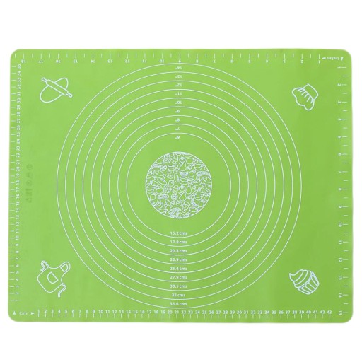 Na brzegach maty umieszczono podziałkę centymetrową. Dodatkowa podziałka centymetrowa zaczynająca się od środka - pomoże wyrobić np. placek ciasta do pizzy o odpowiedniej średnicy.
