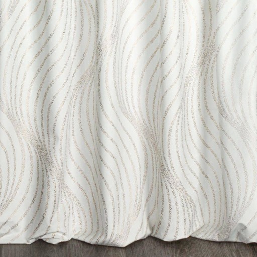 Białe tło tkaniny z wysokiej jakości miękkiego welwetu pokrywa złoty nadruk. Dekoracja tworzy niezwykłą kompozycję dedykowaną nowoczesnym wnętrzom. Miękki i bardzo przyjemny w dotyku welwet dodaje wnętrzu ciepła i miękko otula okno, tworząc subtelne dopełnienie aranżacji wnętrza.