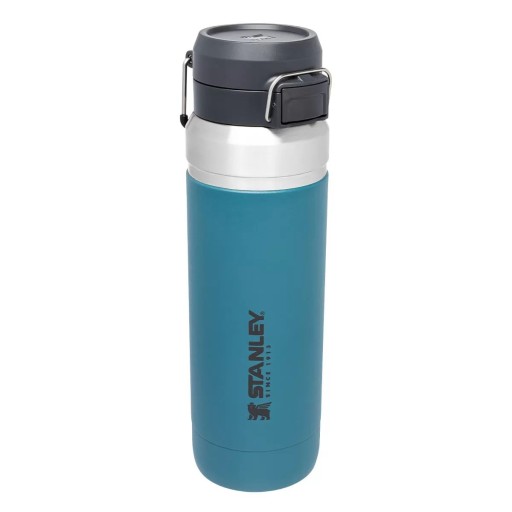 Przy pokrywce znajduje się metalowy uchwyt ułatwiający przenoszenie butelki oraz umożliwiający przypięcie do plecaka.