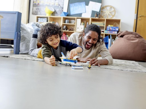 Fajny zestaw do budowania zabawkowego samolotu Minionków (75547) z figurkami LEGO® Stuarta (w stroju pilota) oraz Boba. Gdy samolot będzie gotowy, dzieci mogą użyć go do odtwarzania kultowych scen z filmu „Minionki: Wejście Gru”. W tym ciekawym zestawie jest naprawdę wiele do odkrycia. Fani znajdą w pudełku figurki LEGO® Boba i Stuarta, a także świetne akcesoria do pomysłowej zabawy, w tym banana, hot doga, torebkę orzeszków, walizkę i miotacz bąków! Ten zestaw to gwarancja kreatywnej zabawy. Samolot ma odłączany dach, więc dzieci mogą zbadać jego wnętrze wraz z Minionkami. Posadź Stuarta w kokpicie, a Boba wyślij do kabiny pasażerskiej — ze swoim charakterem uroczego rozrabiaki idealnie się do tego nadaje. Doskonały wybór dla dzieci w wieku od 4 lat. Dzięki instrukcjom Instructions PLUS nauka budowania będzie jeszcze przyjemniejsza. Model z zestawu z figurkami Minionków ma ok. 11 cm wysokości, 24 cm długości i 24 cm szerokości, więc jest w sam raz dla małych fanów zabawkowych samolotów.