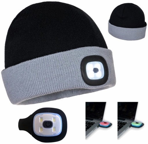 Ciepła czapka z latarką LED - ładowanie poprzez USB