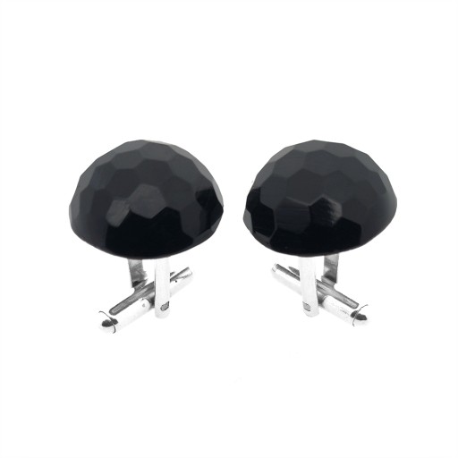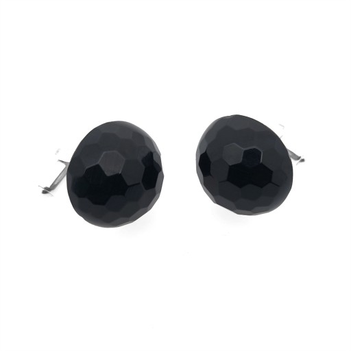 Srebrne spinki do mankietów wykonane z Onyksu, w kształcie połowy piłki.