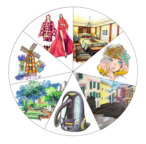 Szybkoschnące atramenty zapewniają wysokie nasycenie. Jest kolorowy i łatwy do nakładania, dzięki czemu można mieszać różne kolory. Podczas rysowania nie ma penetracji. Nie pozostawia plam na ubraniach ani dłoniach.