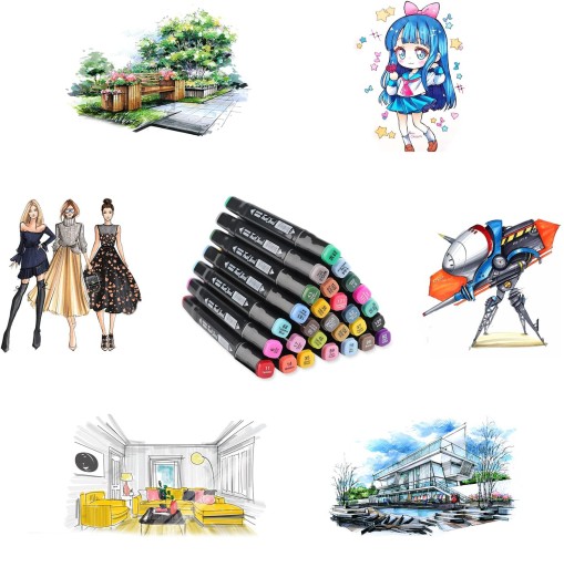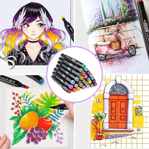 mają dwie różne szerokości końcówek: cienką końcówkę (1 mm) do precyzyjnej grubości linii (6 mm) do kolorowania i cieniowania. Zapewnia dużą wszechstronność i elastyczność w malowaniu.