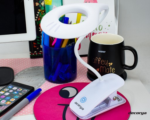 Lampkę możesz dowolnie postawić na biurku lub zaczepić o brzeg biurka, łóżka, wystającego blatu, oszczędzając przy tym miejsce, po naładowaniu działa bezprzewodowo (kabel ładujący w zestawie). Możesz podłączyć ja do komputera, tableta, notebooka aby naładować.