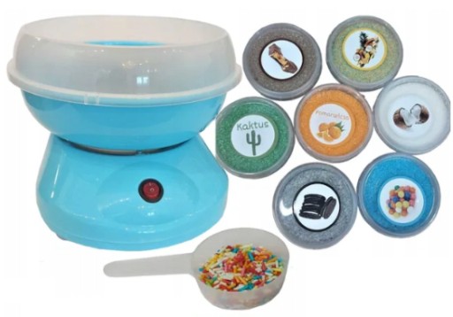 MEGA ZESTAW! MASZYNA DO WATY CUKROWEJ Z KOLOROWYMI CUKRAMI I PATYCZKAMI!