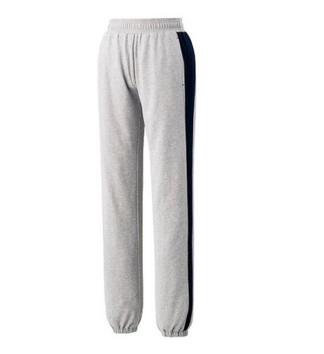 Spodnie w kolorze szarym, z granatowymi lampasami o regularnym kroju dobrze dopasowują się do kształtu sylwetki. Doskonale sprawdzą się w chłodniejsze dni. Wewnętrzna strona przyjemna w dotyku, miękka, zewnętrzna gładka. Elastyczny ściągacz ze sznurkiem w pasie dla odpowiedniego dopasowania do kształtu sylwetki. Boczne kieszenie bez zamków na piłki lub akcesoria. Nogawki zakończone elastycznymi mankietami. Logo w kolorze granatowym na prawej nogawce.