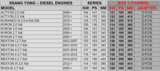 POWERBOX cyfrowy 1-kanałowy do aut marki SsangYong z silnikiem Diesla wyposażonych w system wtrysku common rail.