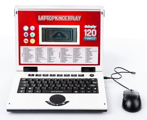 Ten edukacyjny laptop ma możliwość ustawienia języka (polski/angielski) i zawiera 120 zadania (po 60 w każdym języku) zadania matematyczne, muzykę, ćwiczenia pamięciowe, gry i zegar.