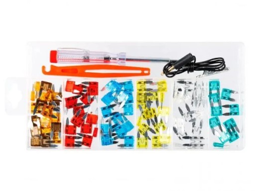 Bezpieczniki MINI + próbnik napięcia + chwytak, 92 elem.