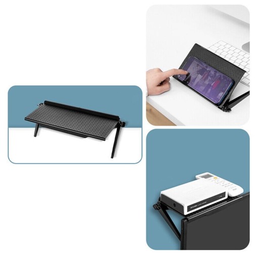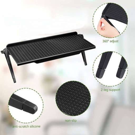 Regulowany uchwyt umożliwia zmianę kąta nachylenia półki i dopasowanie jej do tylnej części ekranu.
