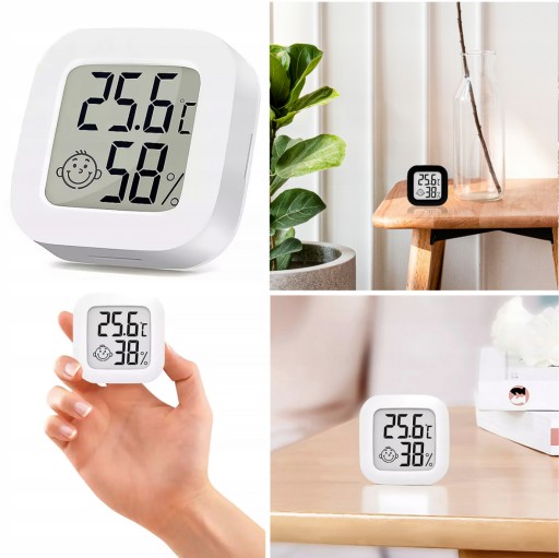- Funkcja: ten termometr zapewnia odczyty wilgotności i temperatury w pomieszczeniach.
