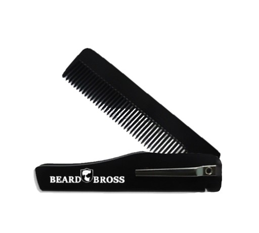 Poręczny, składany grzebień Beard Bross. Wykonany jest z plastiku ABS o wyjątkowej wytrzymałości i łatwy do utrzymania w czystości, przez co może służyć przez długie lata.