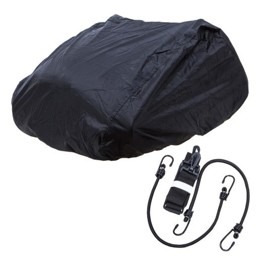 Bardzo ważnymi elementami, świadczącymi o starannym podejściu producenta do kwestii komfortu i wygody korzystania z torby, są również dopasowany pokrowiec, który po założeniu świetnie zabezpiecza torbę przed deszczem czy dołączona podkładka z neoprenu, którą po przyczepieniu do spodu torby można zabezpieczyć motocykl przed porysowanie.