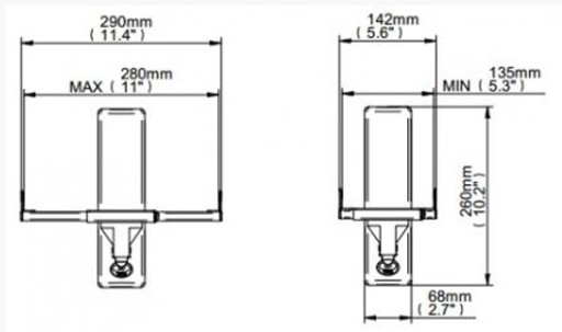 - łatwa regulacja - jedna nakrętka 13mm blokuje regulacje nachylenia i położenia obrotowego