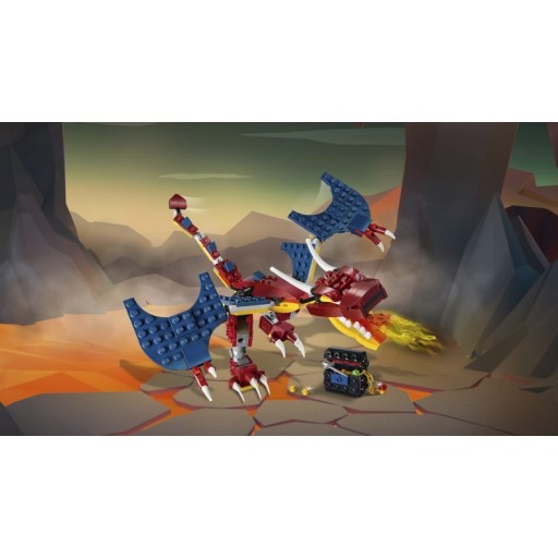 Zestaw LEGO Creator 3 w 1 to świetna zabawa, ponieważ umożliwia zbudowanie trzech różnych modeli. Dzieci mogą zbudować smoka ognia, a potem przebudować go na tygrysa szablozębnego z ruchomymi kończynami, głową i szczęką albo skorpiona z ruchomymi nogami i pazurami.