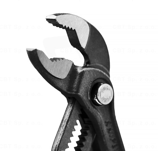 KNIPEX Cobra® - szczypce do rur nowej generacji. Nigdy więcej czasochłonnego dopasowywania rozwarcia szczęk do odpowiedniego rozmiaru. Wystarczy tylko umieścić górną szczękę na chwytanym przedmiocie, nacisnąć przycisk i przyciągnąć dolną szczękę. To takie proste!