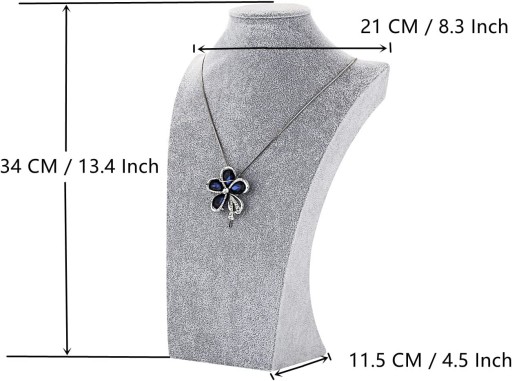 POLMART ВИТРИНА ДЛЯ ЮВЕЛИРНЫХ ИЗДЕЛИЙ С ЦЕПЯМИ ПОДСТАВКА БЮСТ СЕРЫЙ 34 СМ