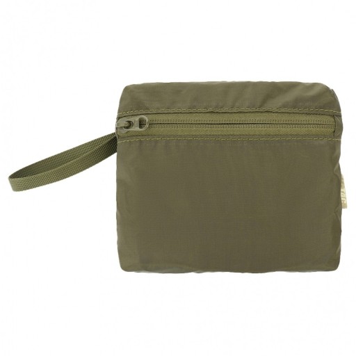 Pokrowiec składa się do małej kieszeni z zamkiem błyskawicznym. Po złożeniu zajmuje bardzo mało miejsca, jest lekki i kompaktowy. Mały uchwyt-pętla z mocnej taśmy kaletniczej daje możliwość zamocowania złożonego pokrowca na oporządzeniu.