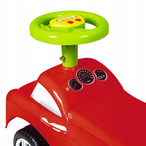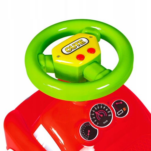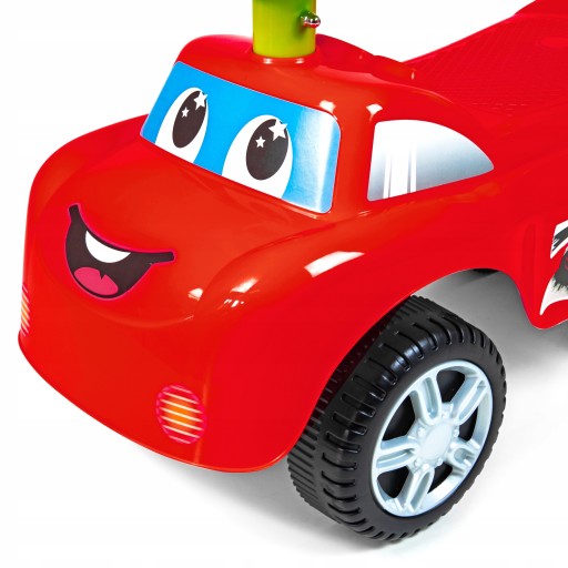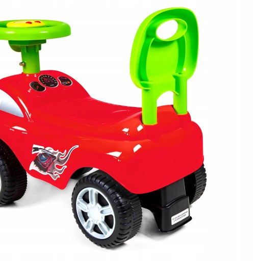 Jeździk odtwarza radosne melodyjki oraz posiada duże, skrętne koła. Dziecko może swobodnie manipulować kierownicą, a odpychając się, wzmacnia i rozwija mięśnie nóżek, co ułatwi późniejszą naukę chodzenia. Wyprofilowane siedzonko zapewni odpowiedni komfort dziecku w trakcie korzystania z produktu. Pchacz posiada w tylnej części zabezpieczenie przed wywróceniem, co daje dziecku poczucie bezpieczeństwa.