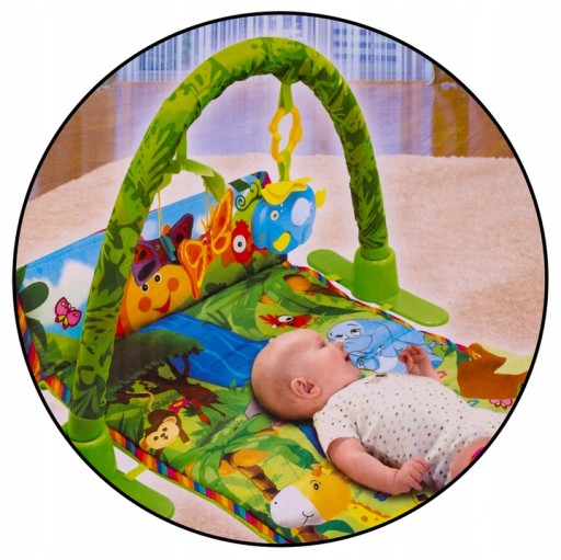 Wialofunkcyjna Mata Edukacyjna Tropikalny Las to świetna zabawa dla Twojego malucha. Mata wykonana jest z bardzo dobrych materiałów. Jest mięciutkim i bezpiecznym miejscem do spędzania czasu dla Twojego dziecka. Mata dzięki bogatej kolorystyce, licznym kształtom, dźwiękom naśladującym odgłosy natury oraz wesołym melodyjkom stanowi źródło wielu bodźców będących podstawą do rozwoju zmysłów naszej pociechy.