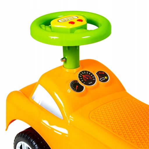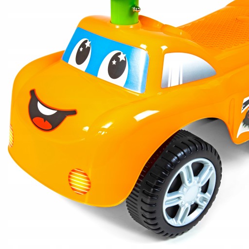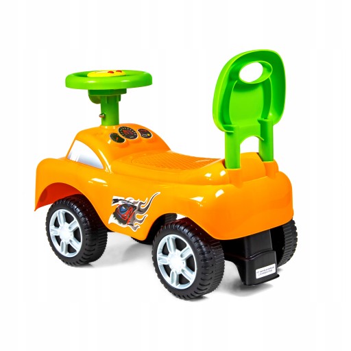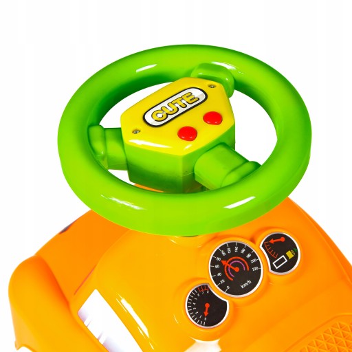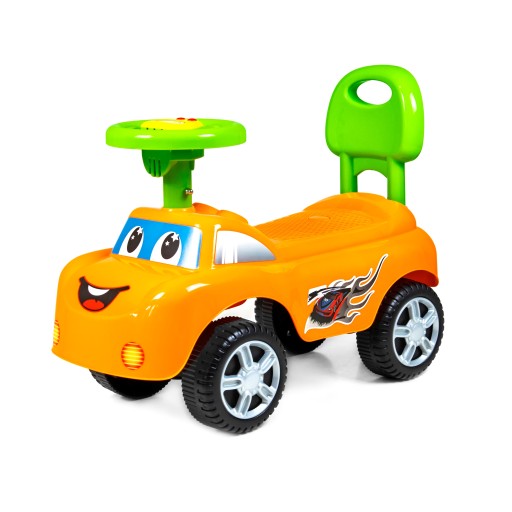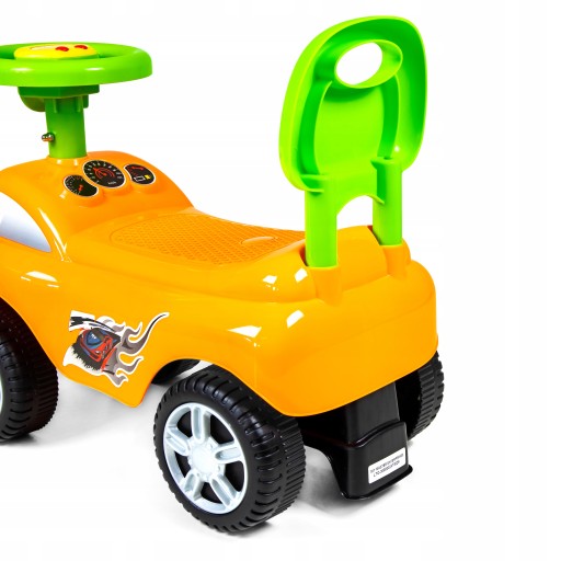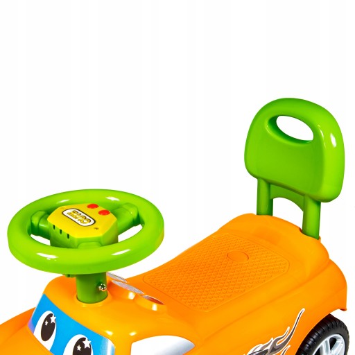 Jeździk odtwarza radosne melodyjki oraz posiada duże, skrętne koła. Dziecko może swobodnie manipulować kierownicą, a odpychając się, wzmacnia i rozwija mięśnie nóżek, co ułatwi późniejszą naukę chodzenia. Wyprofilowane siedzonko zapewni odpowiedni komfort dziecku w trakcie korzystania z produktu. Pchacz posiada w tylnej części zabezpieczenie przed wywróceniem, co daje dziecku poczucie bezpieczeństwa.
