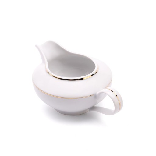 Porcelanowa, duża sosjerka z linii Złota Rita wyprodukowana w Polsce przez znaną markę Chodzież. Posiada malowane ręcznie piękne, delikatne zdobienia w kolorze złota, które mienią się w świetle.