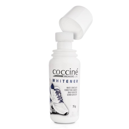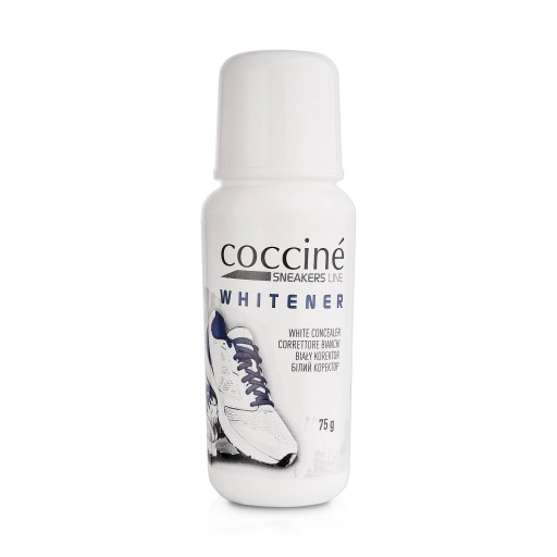 KOREKTOR DO BIAŁYCH BUTÓW COCCINE SNEAKERS 75 ml: Ten wybitny korektor przywraca biel punktowo i w mig. Po co kupować nowe buty, skoro można naprawić stare? WHITENER to ekskluzywna pielęgnacja białej skóry: Satynowa biel alpejskich śnieżynek w preparacie do retuszu białego obuwia. Wyrównuje, odświeża i pogłębia kolor białych butów z gładkiej skóry, ale i również do tekstylnych jak i z tworzywa. Skutecznie maskuje drobne ubytki, niweluje otarcia i uszkodzenia. Zalecane do butów typu sneakers! Parametry: