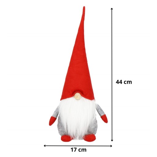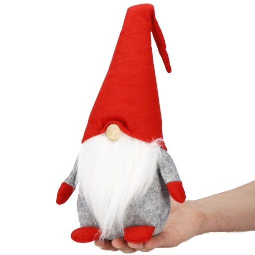 Uderzająca jest precyzja i dbałość, z jaką wykonany został nasz świąteczny kolega-krasnal o ujmującej powierzchowności. Każdy element dopełnia charakterystykę tego jowialnego, poczciwego gnoma: wysoka, miła w dotyku czapeczka, gęsta broda, i okrągły nochal, Stabilna podstawa jest gwarancją, że skrzat będzie nieruchomo siedział i nie ucieknie z wybranego dla niego miejsca