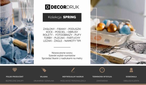 Wraz z pierwszymi promieniami słońca, przychodzi czas na wiosenne porządki i odświeżenie wystroju wnętrz. Po zimie najczęściej marzymy o tym by w naszych wnętrzach rozgościły się słoneczne i pastelowe barwy. Poduszki w kwiaty będą idealną ozdobą wiosennego salonu, a wielkanocne obrusy i wiosenne zasłony we wzory sprawią, że salon lub jadalnia nabiorą niepowtarzalnego charakteru. Wiosna to także czas wielkanocnych porządków i krzątaniny. Warto więc zadbać nie tylko o stylowe poduszki i obrusy w salonie. Nowe wiosenne zazdrostki kuchenne z pewnością umilą czas spędzony w kuchni na wielkanocnych przygotowaniach. Tworząc kolekcję SPRING, skupiliśmy się na potrzebach i upodobaniach naszych klientów, dlatego poza tradycyjnymi wzorami w żonkile i zajączki, znajdziesz również szkicowane wzory wiejskich zwierząt i akwarelowe kwiaty oraz liście.