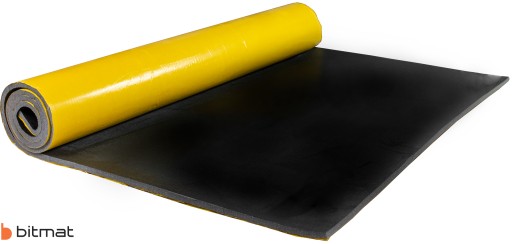 Pianka wyciszająca gumowa typu K9s marki Bitmat o wysokim współczynniku tłumienia przeznaczona do stosowania w szerokim zakresie temperatur -50 stopni do 85 stopni C.