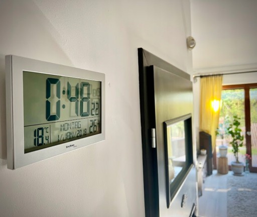 - Zegar radiowy ścienny elektroniczny z pomiarem temperatury pokojowej i wilgotności powietrza - solidna jakość wykonania - precyzja i dokładność