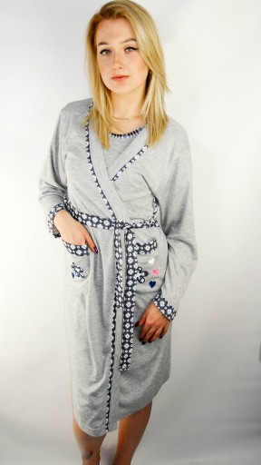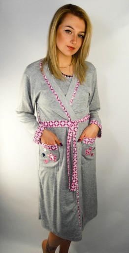 Szlafrok koloru SZAREGO, kolory aplikacji losowe w zależności od dostawy,