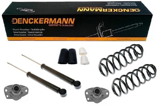 KOMPLET AMORTYZATORÓW GAZOWYCH FIRMY DENCKERMANN RAZEM Z OSŁONAMI, ODBOJAMI I GÓRNYMI MOCOWANIAMI AMORTYZATORA ORAZ SPRĘŻYNY WZMOCNIONE NA TYŁ