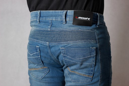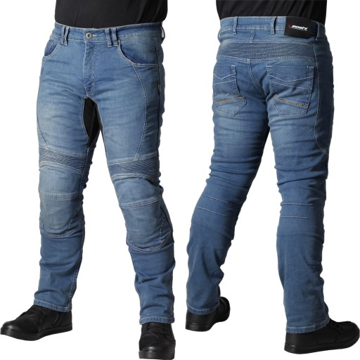 Spodnie o bardzo nowoczesnym motocyklowym kroju z licznymi strefami akordeonowymi i kevlarem. Wysoki poziom bezpieczeństwa zapewniają panele z kevlaru oraz ochraniacze kolan. Bardzo solidne , mocne i bezpieczne jeansy, które jednocześnie świetnie leżą.