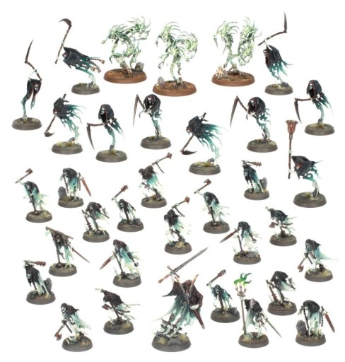 Z Shyish, królestwa śmierci, pochodzą eteryczne Nighthaunt - bezcielesne duchy, które napędzane są do morderstwa przez gorzką nienawiść do żywych. Te widma to broń terroru Wielkiego Nekromanty, zjednoczone pod najokrutniejszymi i najbardziej torturowanymi władcami, jacy kiedykolwiek umarli. Na rozkaz nieszczęsnego Rycerza Całunu, wirujące hordy bezwzględnych Chainrasps ciągną wrogów na zimne kosy oszalałych Żniwiarzy Grimghast, podczas gdy Duchowe Zastępy potępionych dusz za jednym dotknięciem zamieniają krew w lód.