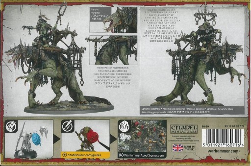 Zestaw składa się z 66 plastikowych elementów, z których można złożyć jednego Swampbossa Skumdrekka i jest dostarczany z dużą owalną podstawką. Ten model może być alternatywnie złożony jako Snatchaboss na Sludgeraker Beast. Ta miniatura jest dostarczana niepomalowana i wymaga montażu - zalecamy użycie Citadel Plastic Glue i farb Citadel.