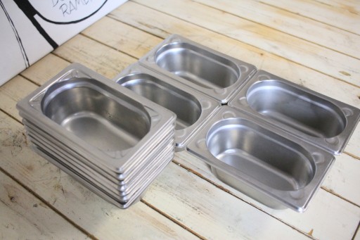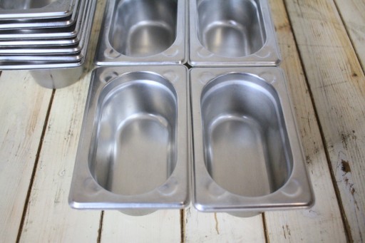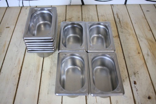mamy do sprzedania używane pojemniki GN 1/9 - 65. Pojemniki były używane, ale są w bardzo dobry stanie. Na innej aukcji możliwość dokupienia pokrywek.
