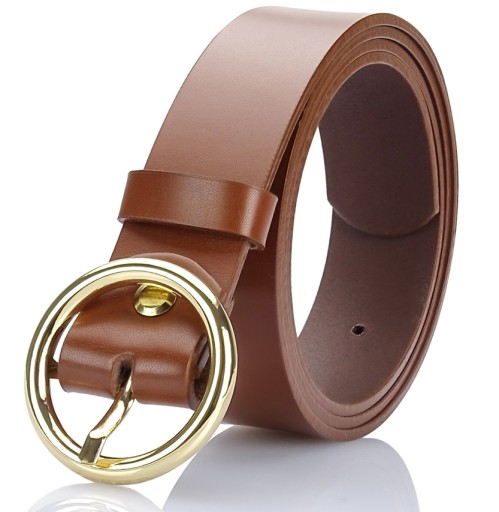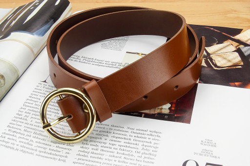DAMSKI BRĄZOWY PASEK Skóra Naturalna KLAMRA ZŁOTA