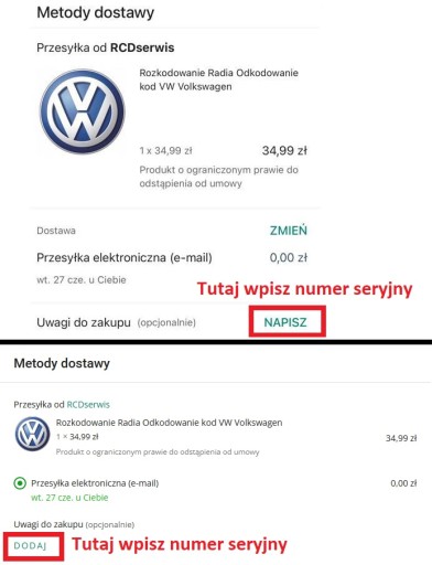 Przedmiotem sprzedaży jest kod do fabrycznego radia lub nawigacji Volkswagen