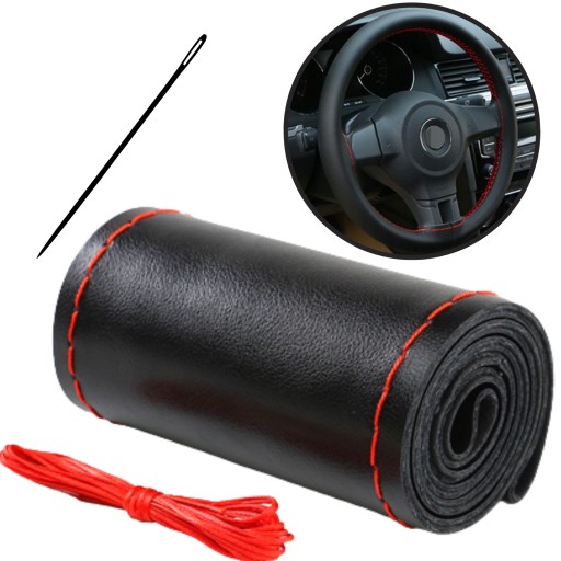 POKROWIEC NA KIEROWNICE NAKŁADKA SKÓRA DO OBSZYCIA Z CZERWONĄ NICIĄ
