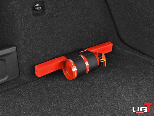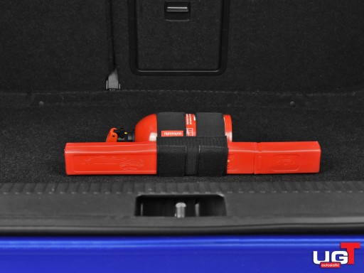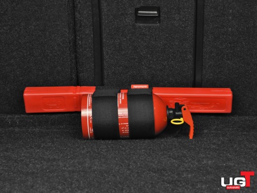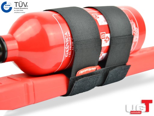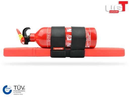 - Uniwersalny uchwyt pasujący do większości typowych gaśnic samochodowych i trójkątów.