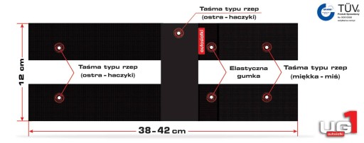 Rozmiar uchwytu może się różnić do +/- 5%. Długość opaski to ok 36cm (43cm po rozciągnięciu).