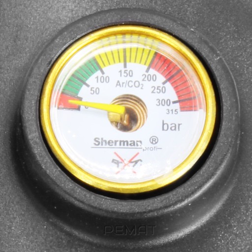 To jednostopniowy reduktor do argonu, mieszanki i dwutlenku węgla z rotametrycznym wskaźnikiem przepływu gazu oraz manometrycznym wskaźnikiem ciśnienia roboczego w butli.