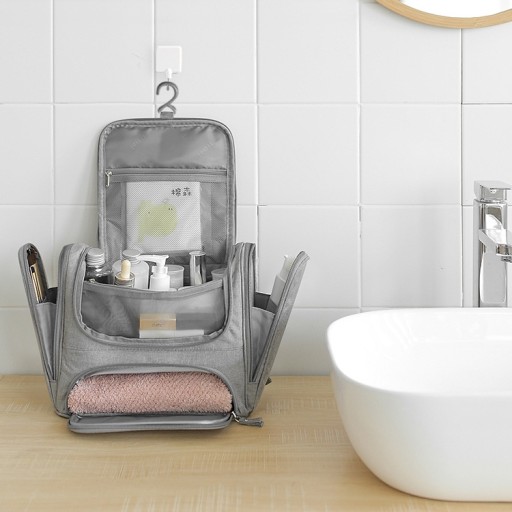 Kosmetyczka Podróżna Przenośny Organizer Wiszący Podwójna Rozkładana Szara