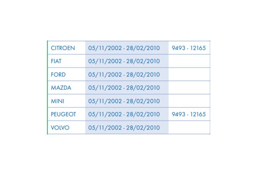 Płyn przeznaczony jest do pojazdów z tabeli poniżej :